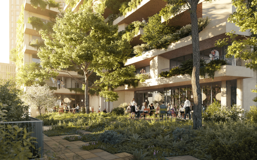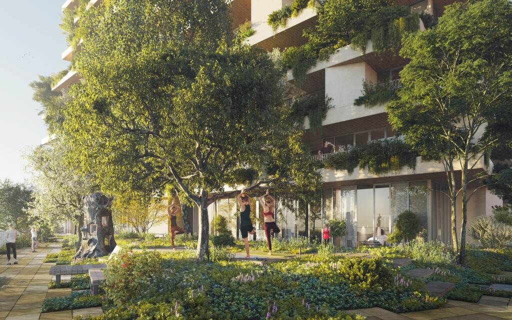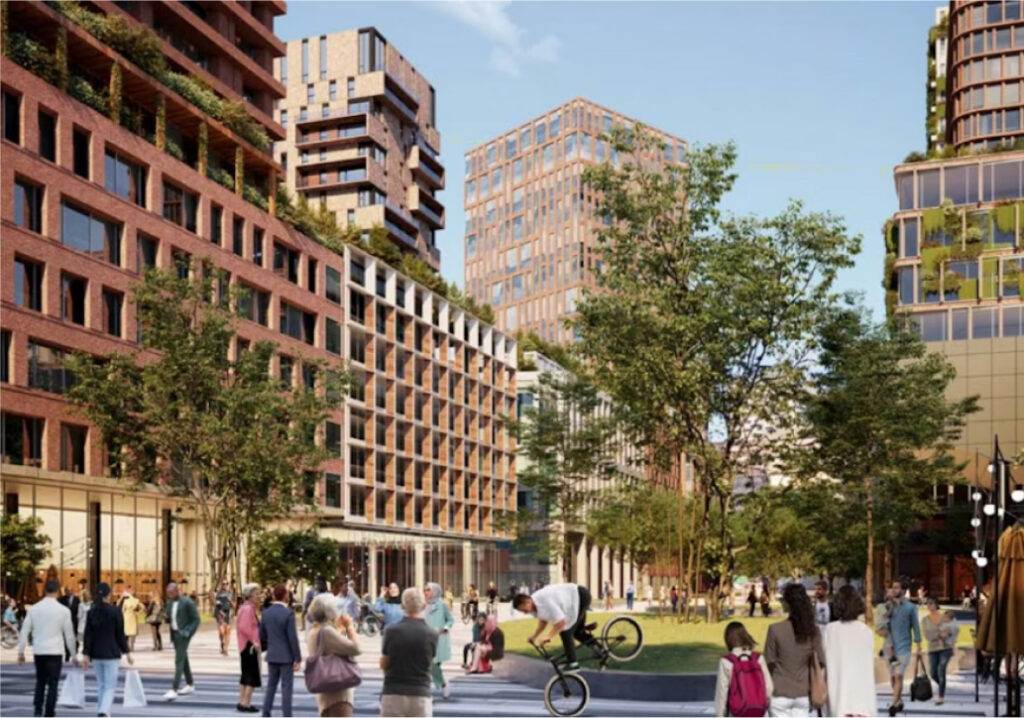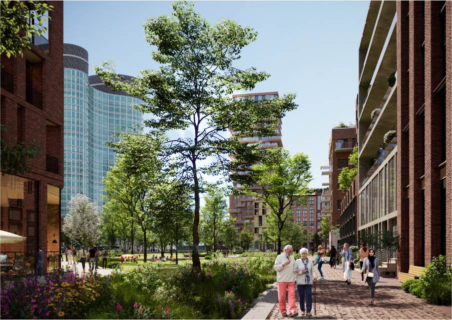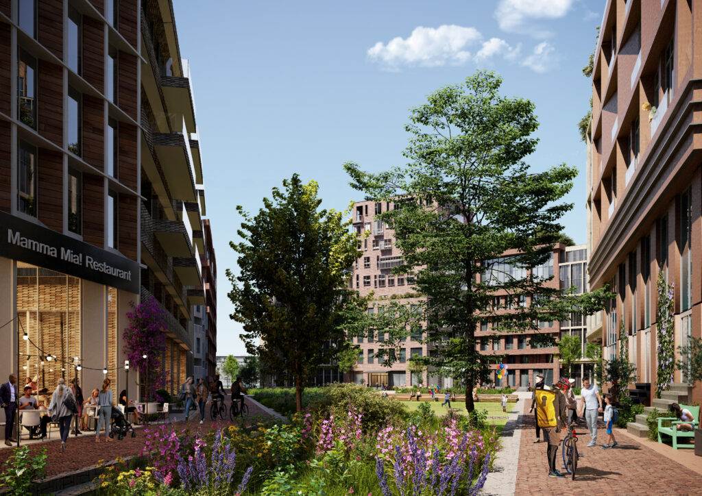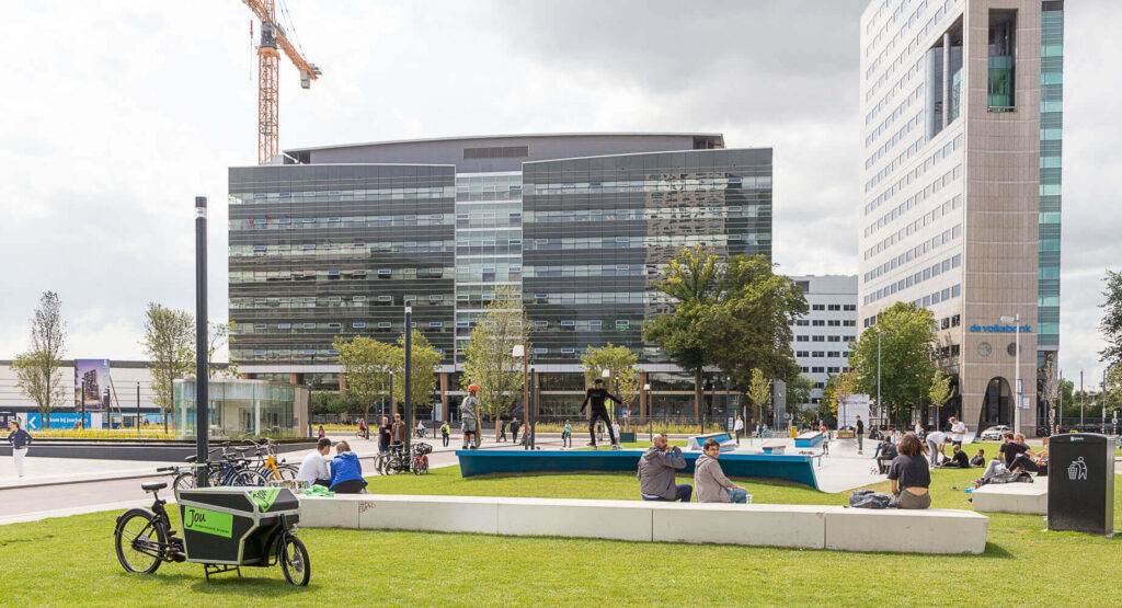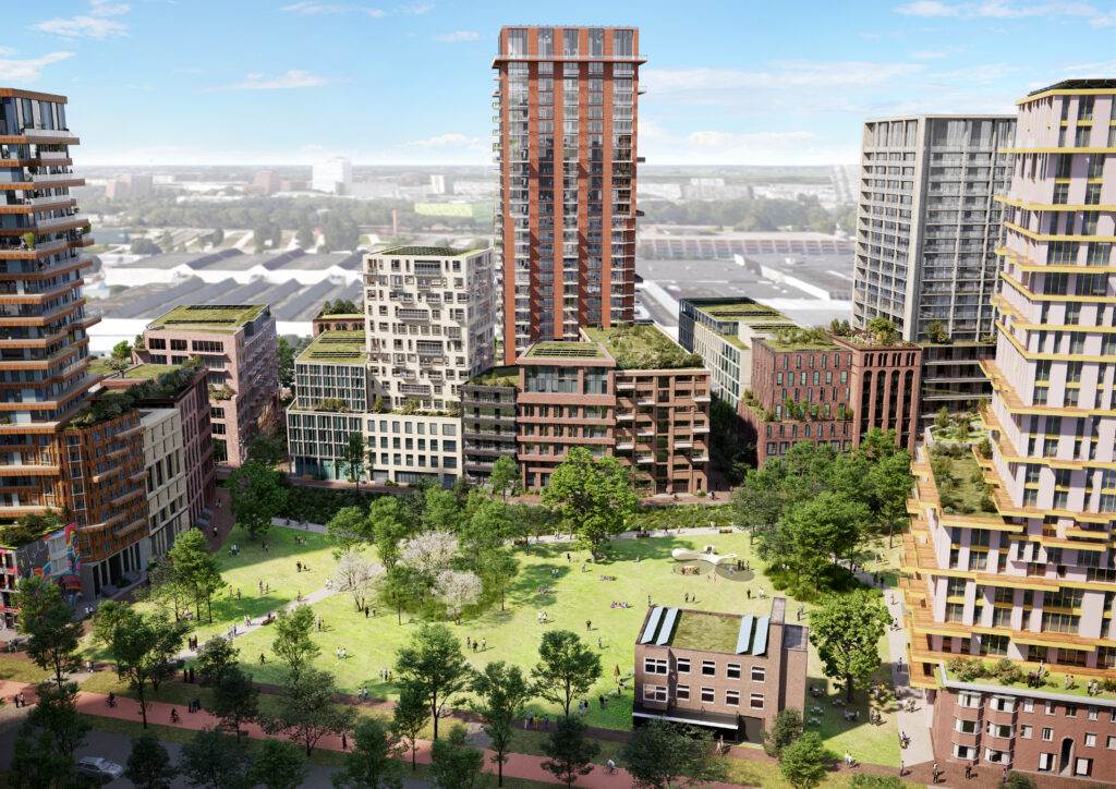 In Beurskwartier staan gebouwen dichtbij elkaar. Dat is gunstig voor openbaar vervoer, levendigheid maar bijvoorbeeld ook efficiënte warmtelevering. Tegelijkertijd krijgt Beurskwartier 2 stadsparken, veel gevelgroen en diverse dak- en binnentuinen.