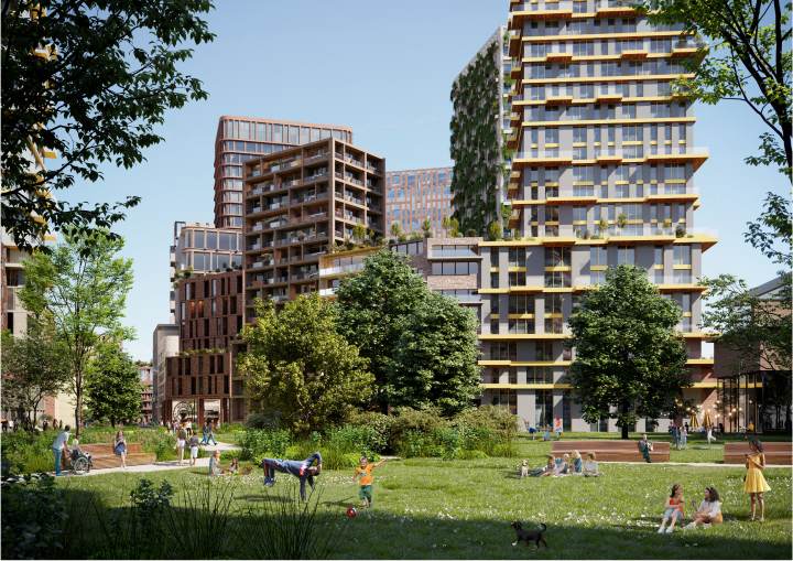 In Beurskwartier komt alles samen. Sociale huurwoningen en koopwoningen. Ateliers en grote kantoren. Parken en een nachtclub. Deelmobiliteit en fiets- en voetgangerspaden. Sport en ontspanning.