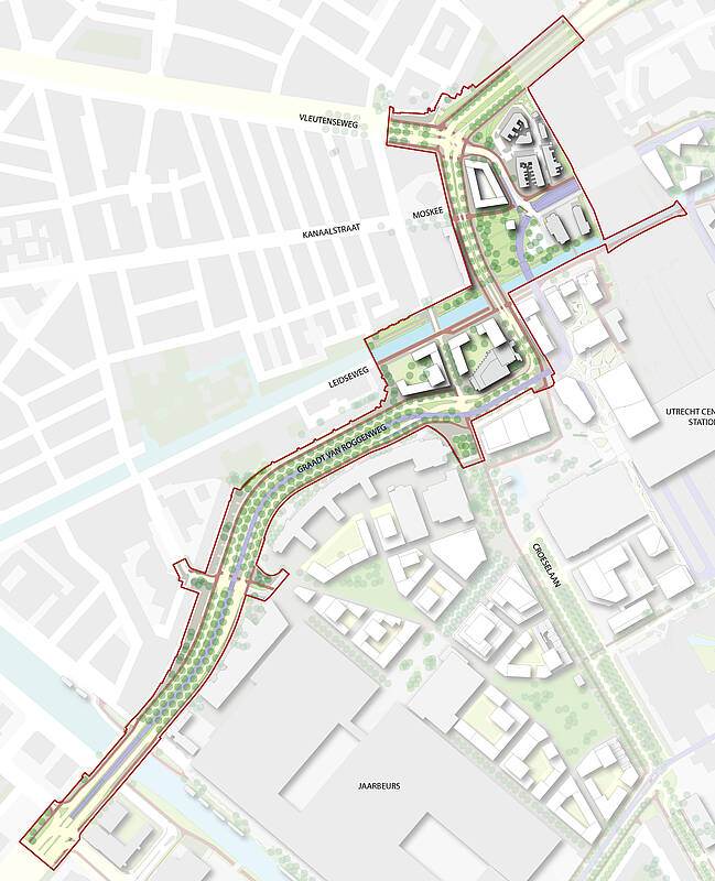 Beurskwartier ligt naast Utrecht Centraal, op loopafstand van het historische stadshart. Binnen 10 minuten zijn alle voorzieningen bereikbaar. Het gebied wordt autoluw, met voorrang voor fietser en voetganger.